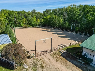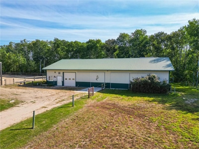The Barn: A 48’x84′ steel-clad barn w/ heated floors, 6 box stalls, 1 foaling stall, rubber matting throughout. Heated tack room, hay shed, indoor shavings storage, loafing shed, outdoor training ring and paddocks. Birds Hill Park riding paths and miles of scenic trails on your doorstep.