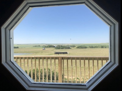 The House: A spacious 4-bedroom, 4-bathroom home, main floor with large country kitchen. Each floor has its own beautiful fieldstone wood burning fireplace. Property could suit a bed & breakfast, wedding venue, or a retreat. One hour+ to Spruce Meadows.