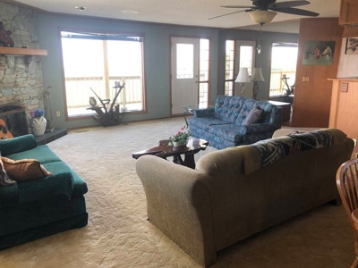 The Barn: Large horse barn with 20 indoor box stalls plus 10 box stalls under a lean-to, 8 tie stalls, 60′ x 36′ indoor arena. Small turnout paddocks as well as larger paddocks with shelters; most have waterers.