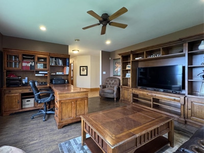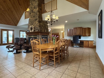 The House: Stunning 8,000 sq.ft. 5-bedroom, 6-bathroom custom-built home with open concept chef’s kitchen, dining and living area beneath a cathedral ceiling, floor-to-ceiling stone fireplace. Lower level with full home gym; 3-vehicle attached garage.
