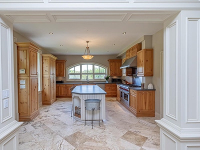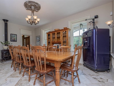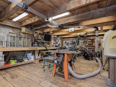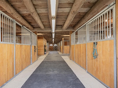 The Barn: The Mennonite-restored bank barn features five stalls, wash stall, tack room, hayloft, large heated workshop and three paddocks. Miles of maintained trails for hacking; original stone ice house.