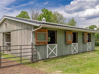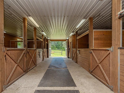 The Barn: Charming 5-stall barn with Dutch doors, power and water. Multiple paddocks, run-ins.