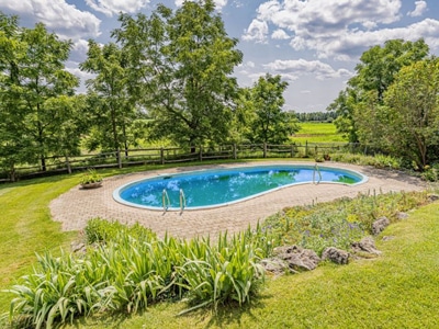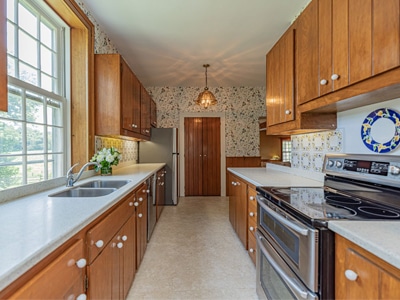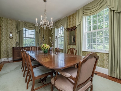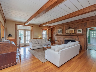The House: Four bedrooms, 3 bathrooms, large living room with gas fireplace, original hardwood floors, formal dining room, galley kitchen with pantry. Sunroom overlooks the inground pool and beautiful gardens.