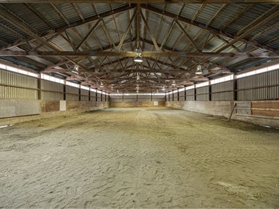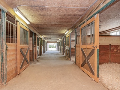The Barn: The stable has 17 stalls, tack room with washroom, viewing room to the attached indoor arena, hayloft, large grass paddock and pond.