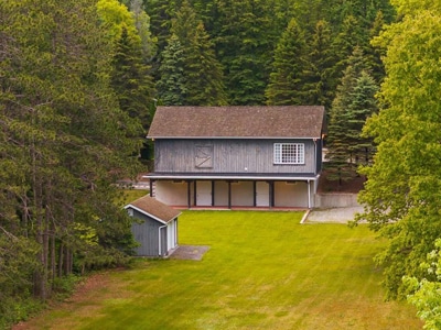 The Barn: Barn with three stalls, tack room, fenced paddock, and arena-ready land. Heated three-plus-car coach house with a loft bedroom in the second garage.