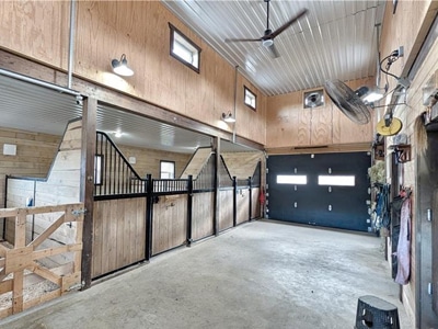 The Barn: The 36′ x 36′ stable has a metal roof and heated floors, two box stalls and a pony stall, wash rack, rubber flooring. Sand riding ring. Four large pastures with Electrobraid fencing including a Paddock Paradise track, as featured in the 2025 Canadian Horse Annual!