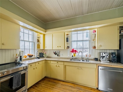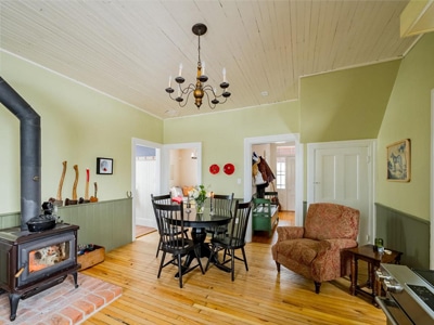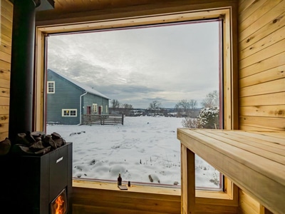 The House: A charming 2,000+ sq.ft. 4-bedroom, 2-bathroom farmhouse with original wood floors, breathtaking views, a custom-built sauna and top-of-the-line wood-burning stove. Full basement.