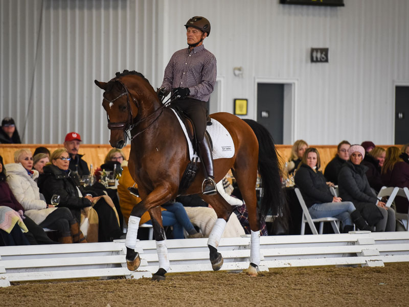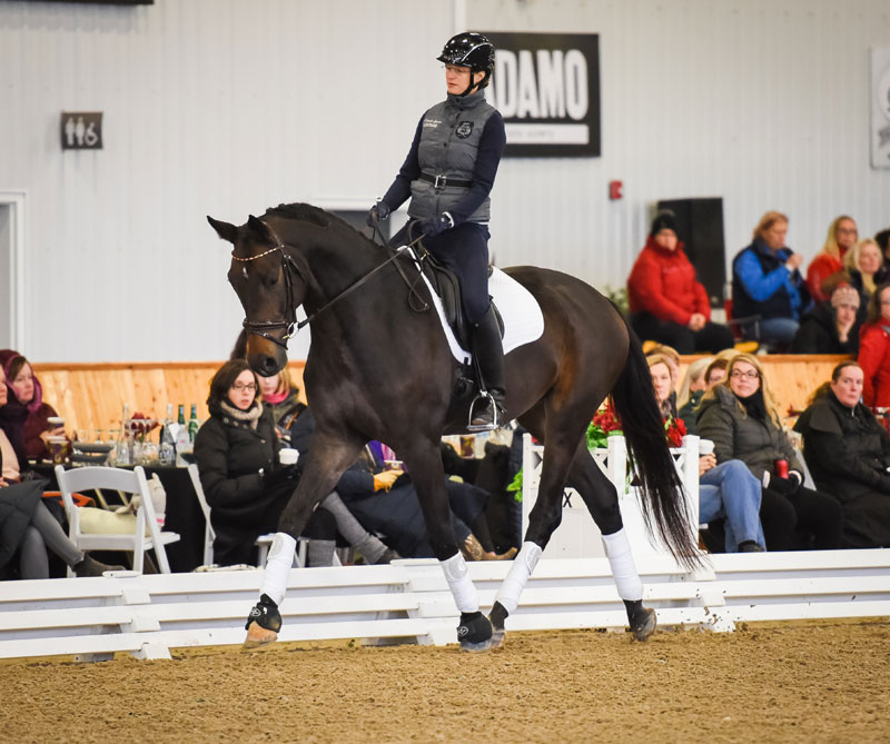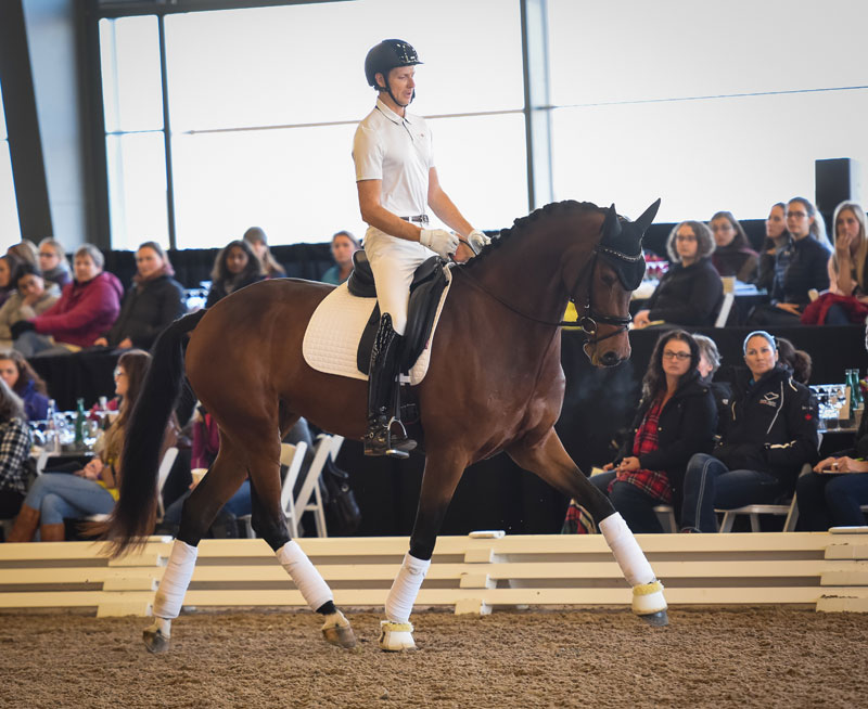 The final rider of the day was Evi Strasser aboard Disney Tyme, a 10-year-old gelding who made his Grand Prix debut this year. The knowledgeable audience appreciated the difficulty of the work at this level as Evi worked with Dujardin to perfect the full pirouettes, steep half passes and transitions from piaffe to passage which are a hallmark of the Grand Prix tests.