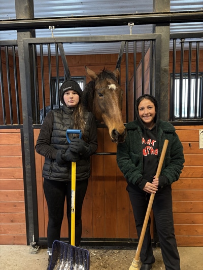 “We always have a checklist on the board of what to do when you are here,” says Freer of how the staff are informed of the day’s tasks. This may include bringing in horses, filling grain bins, distributing hay and shavings, checking waterers and fence lines, feeding the cats, soaking feed, and making up beet pulp, “so they know what to do if they come in for a two-hour shift.”